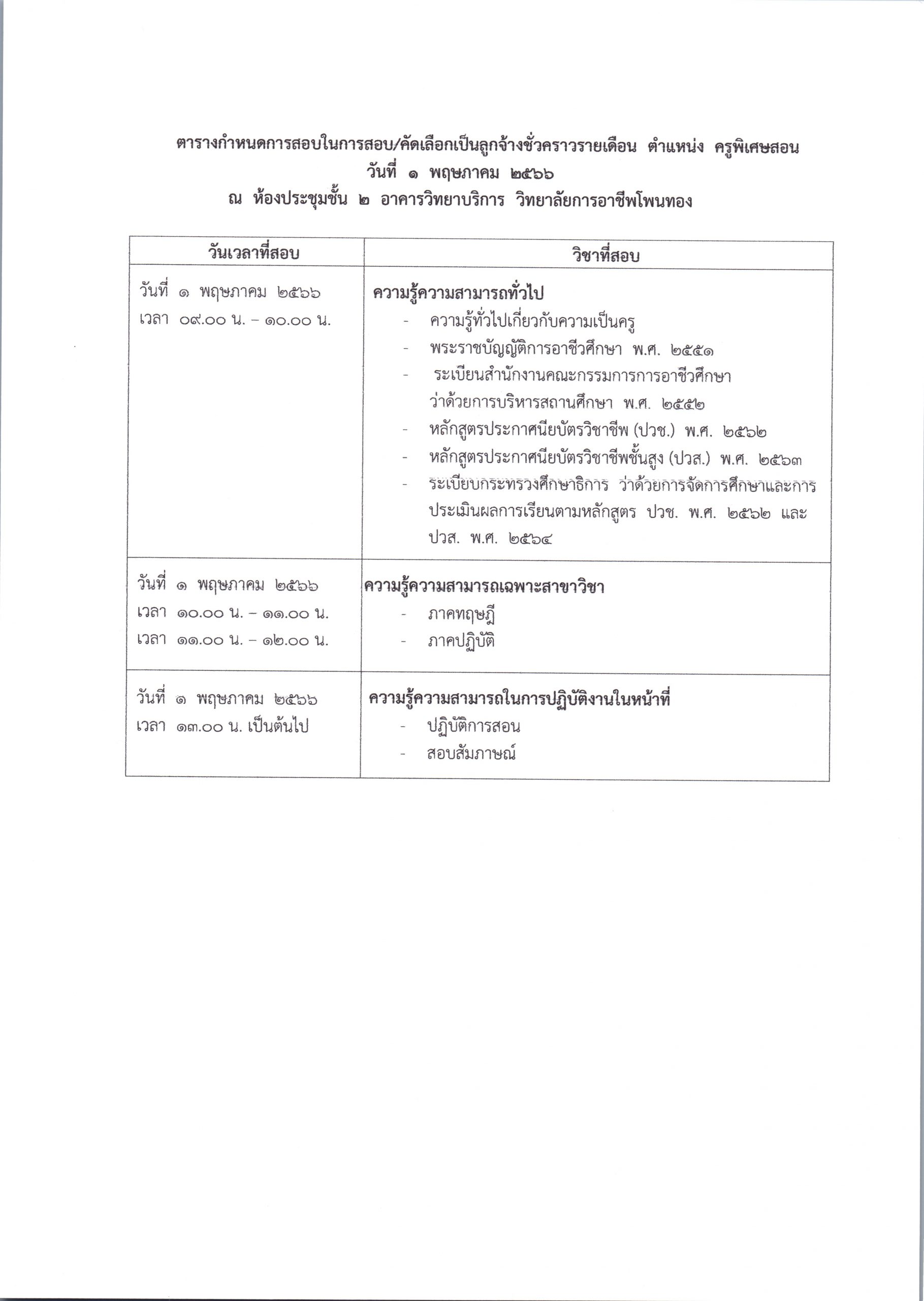ประกาศวิทยาลัยการอาชีพโพนทอง เรื่องการรับสมัครสอบคัดเลือกบุคคลเพื่อเป็นลูกจ้างชั่วคราวรายเดือน ตำแหน่ง ครูพิเศษ ประจำปีงบประมาณ 2566
