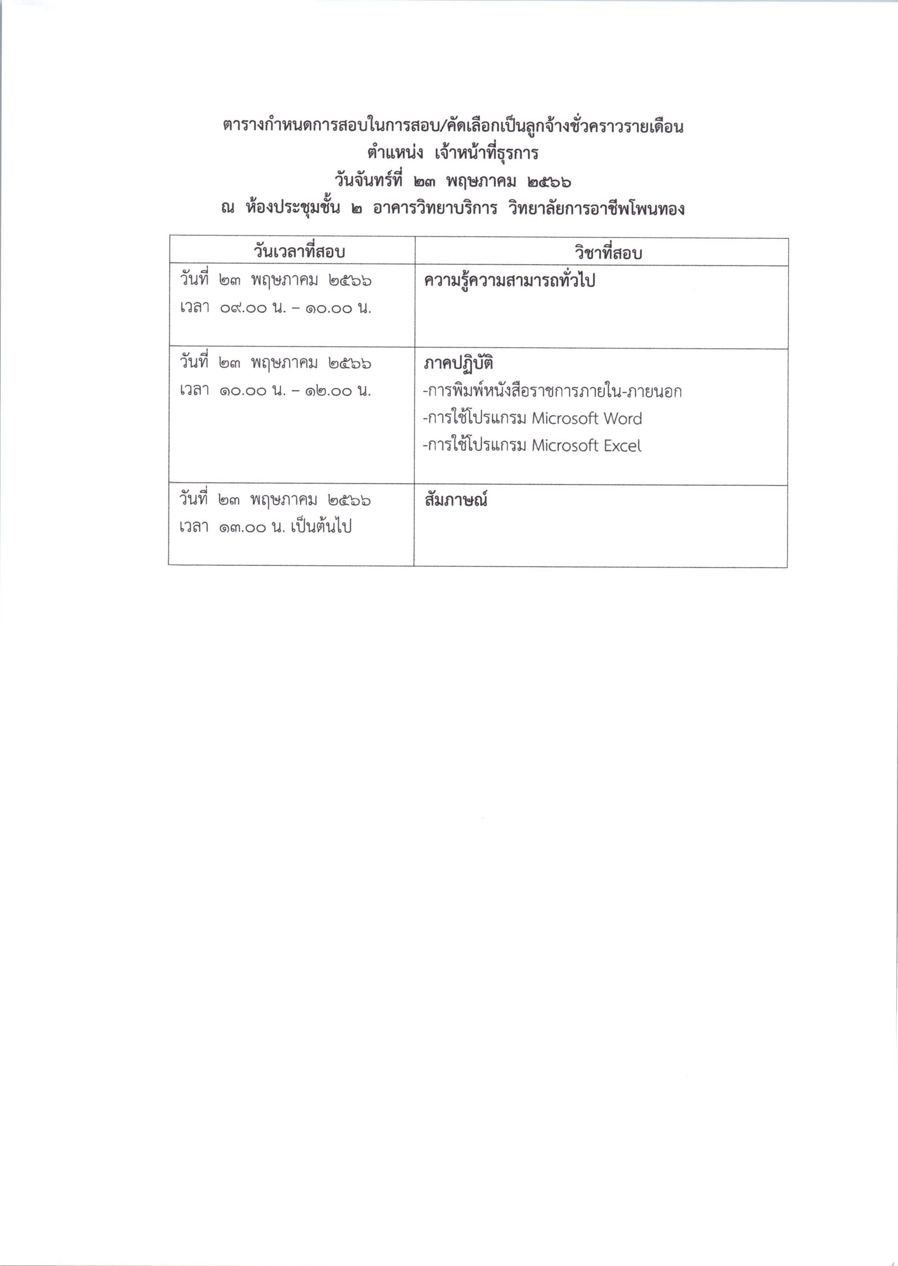 ประกาศรายชื่อผู้มีสิทธิ์สอบคัดเลือกลูกจ้างชั่วคราวรายเดือน ตำแหน่ง เจ้าหน้าที่ธุรการ ประจำปีงบประมาณ 2566