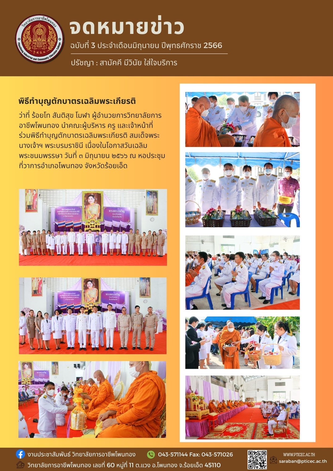 พิธีทำบัญตักบาตรเฉลิมพระเกียรติ วันเฉลิมพระชนมพรรษา สมเด็จพระนางเจ้าฯ พระบรมราชินี วันที่ 3 มิถุนายน 2566