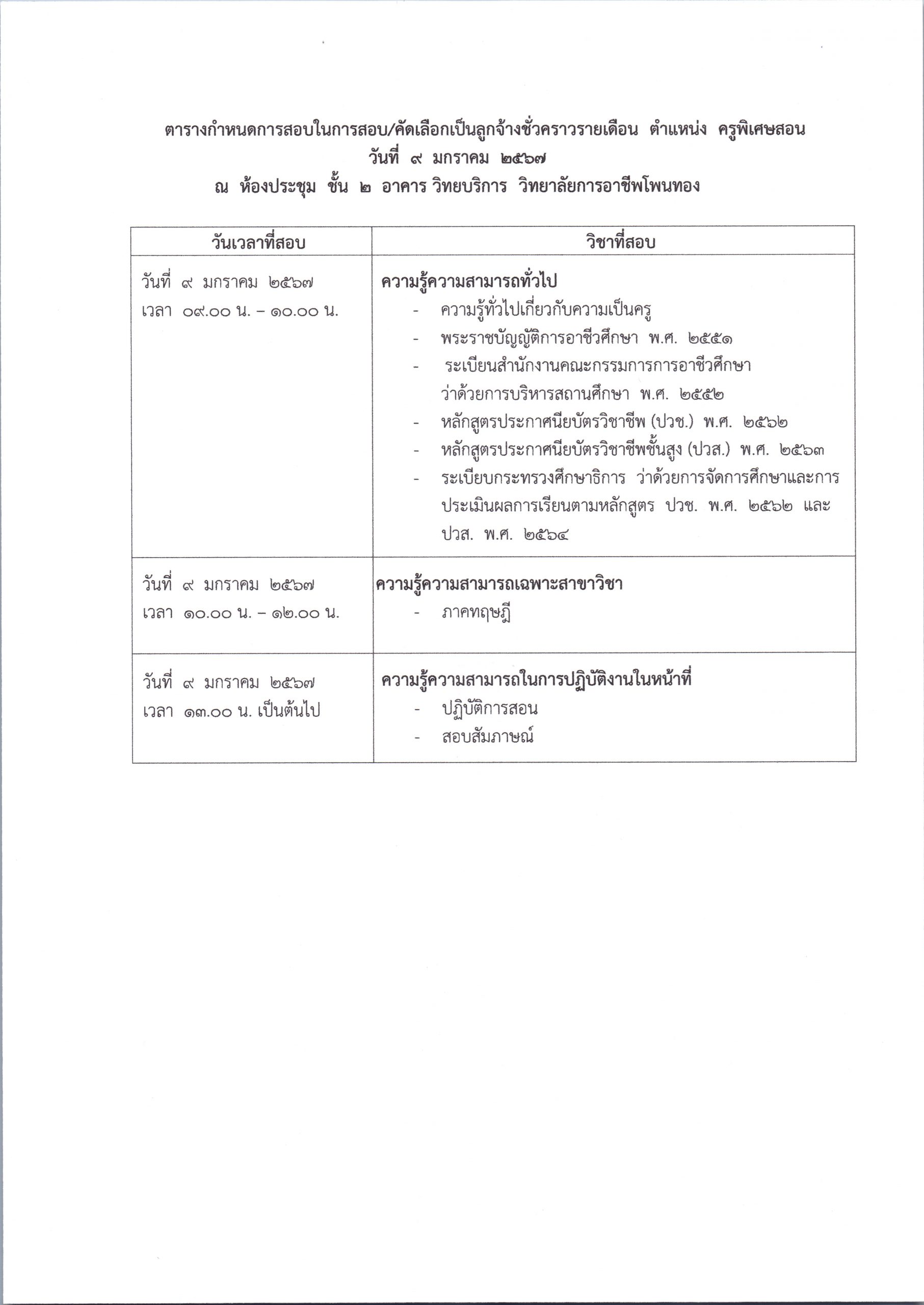 ประกาศวิทยาลัยการอาชีพโพนทอง เรื่อง ประกาศรายชื่อผู้มีสิทธิ์สอบคัดเลือกลูกจ้างชั่วคราวรายเดือน ตำแหน่ง ครูพิเศษสอน ประจำปีการศึกษา 2567