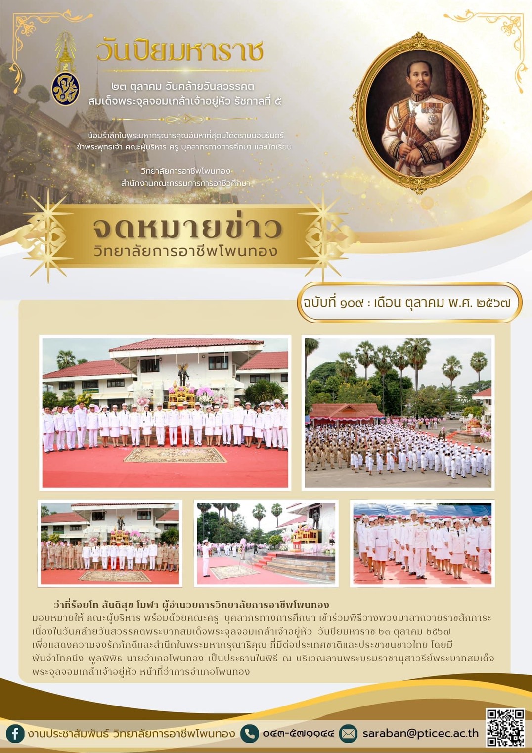 วันปิยมหาราช ๒๓ ตุลาคม วันคล้ายวันสวรรคตสมเด็จพระจุลจอมเกล้าเจ้าอยู่หัว รัชกาลที่ ๕