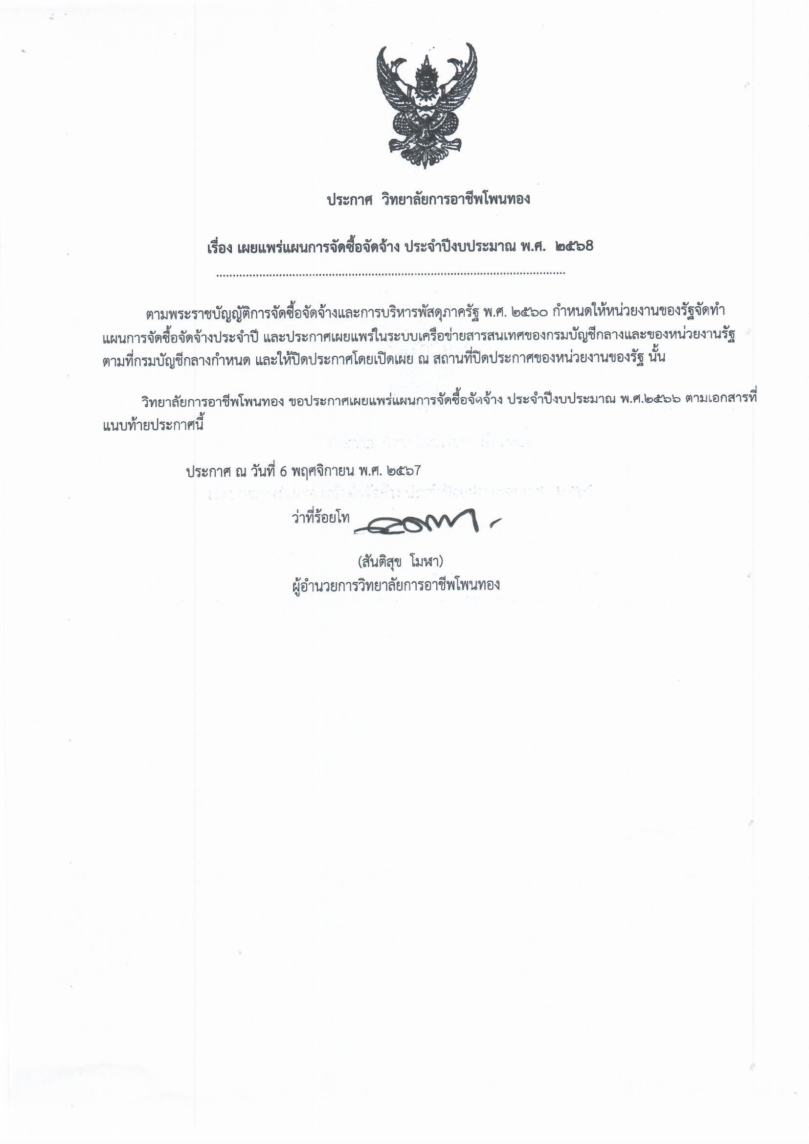 ประกาศเผยแพร่แผนการจัดซื้อจัดจ้าง ประจำปีงบประมาณ พ.ศ. 2568