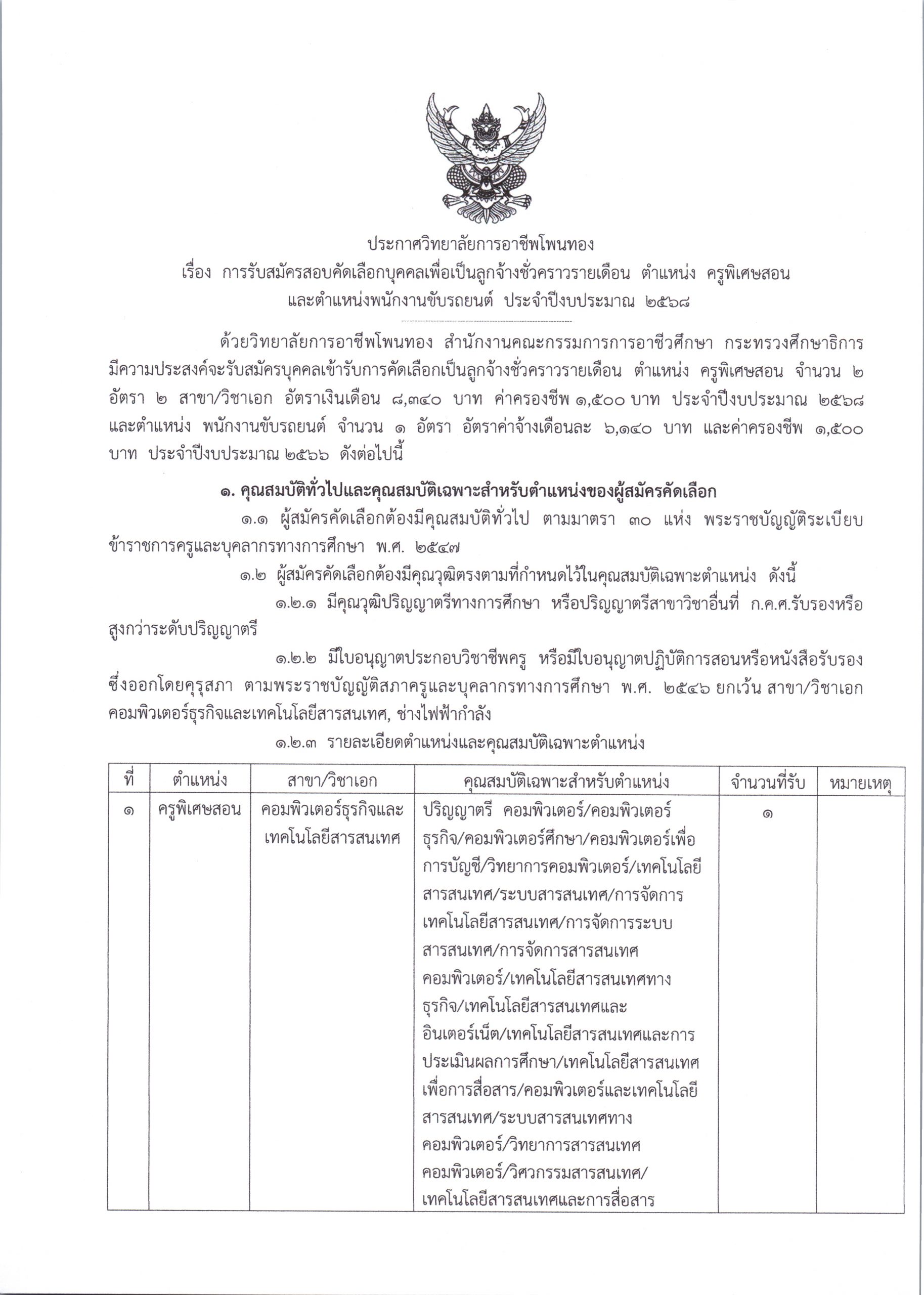 การรับสมัครสอบคัดเลือกบุคคลเพื่อเป็นลูกจ้างชั่วคราวรายเดือน ประจำปีงบประมาณ 2568 ตำแหน่ง ครูพิเศษสอน และตำแหน่ง พนักงานขับรถยนต์