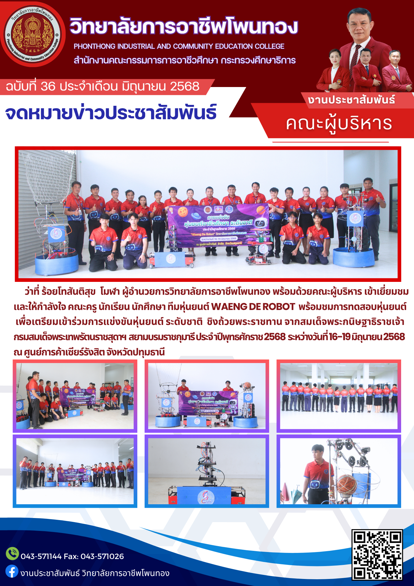 เตรียมเข้าร่วมการแข่งขันหุ่นยนต์ ระดับชาติ ชิงถ้วยพระราชทาน จากสมเด็จพระกนิษฐาธิราชเจ้า กรมสมเด็จพระเทพรัตนราชสุดาฯ สยามบรมราชกุมารี ประจำปีพุทธศักราช 2568