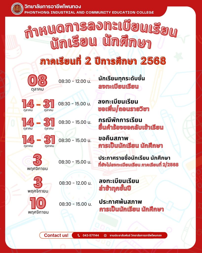 กำหนดการลงทะเบียนเรียน นักเรียน นักศึกษา
