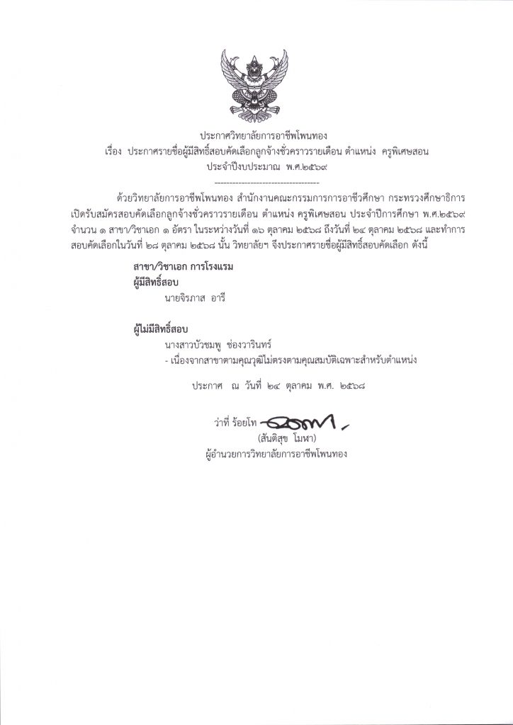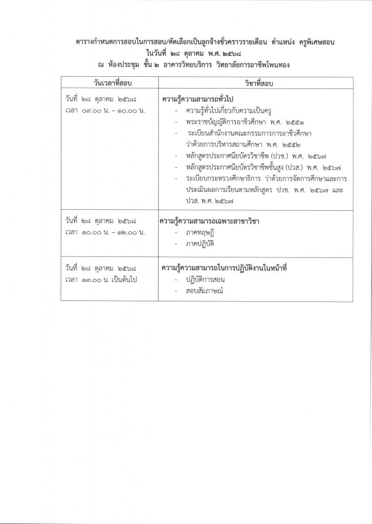 ประกาศรายชื่อผู้มีสิทธิ์สอบคัดเลือกลูกจ้างชั่วคราวรายเดือน ตำแหน่ง ครูพิเศษสอน ประจำปีงบประมาณ พ.ศ.2569