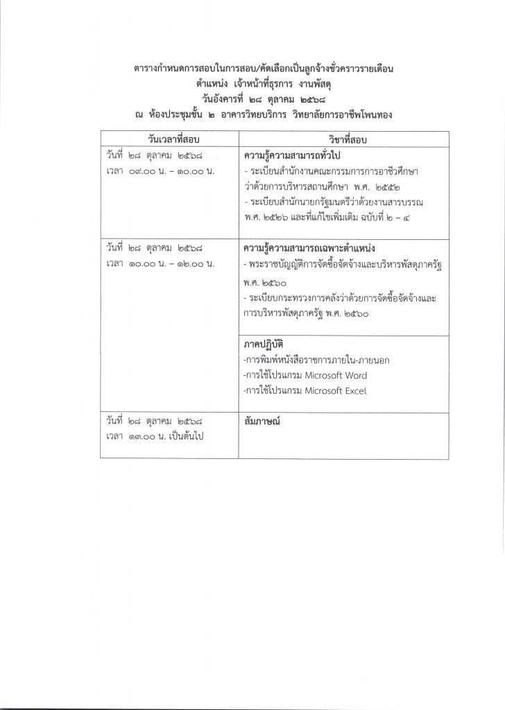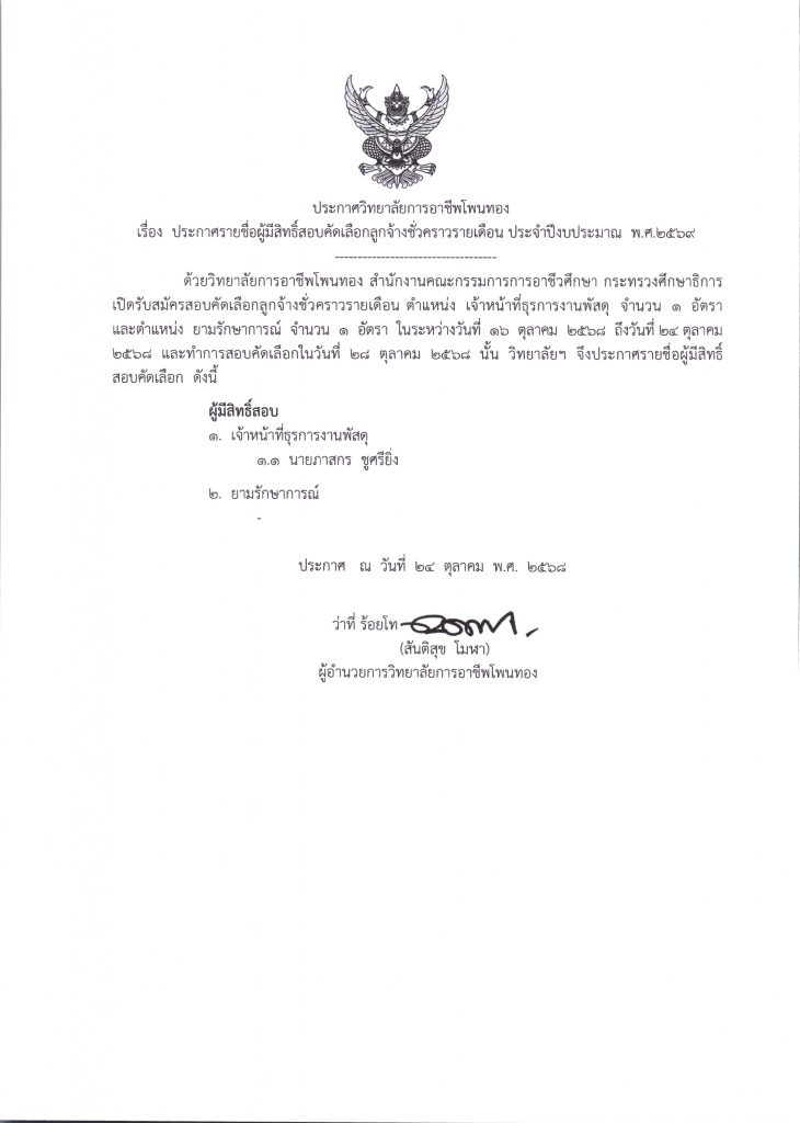 ประกาศรายชื่อผู้มีสิทธิ์สอบคัดเลือกลูกจ้างชั่วคราวรายเดือน ประจำปีงบประมาณ พ.ศ.2569
