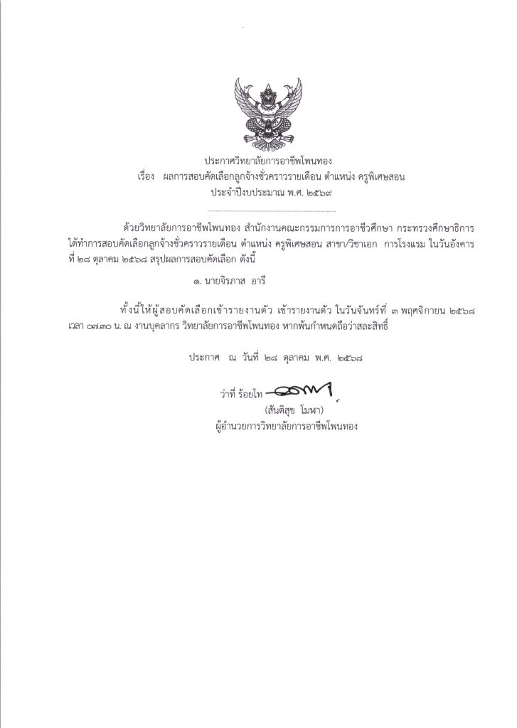 ประกาศผลการสอบคัดเลือกลูกจ้างชั่วคราวรายเดือน ตำแหน่งครูพิเศษสอน ประจำปีงบประมาณ พ.ศ. 2569