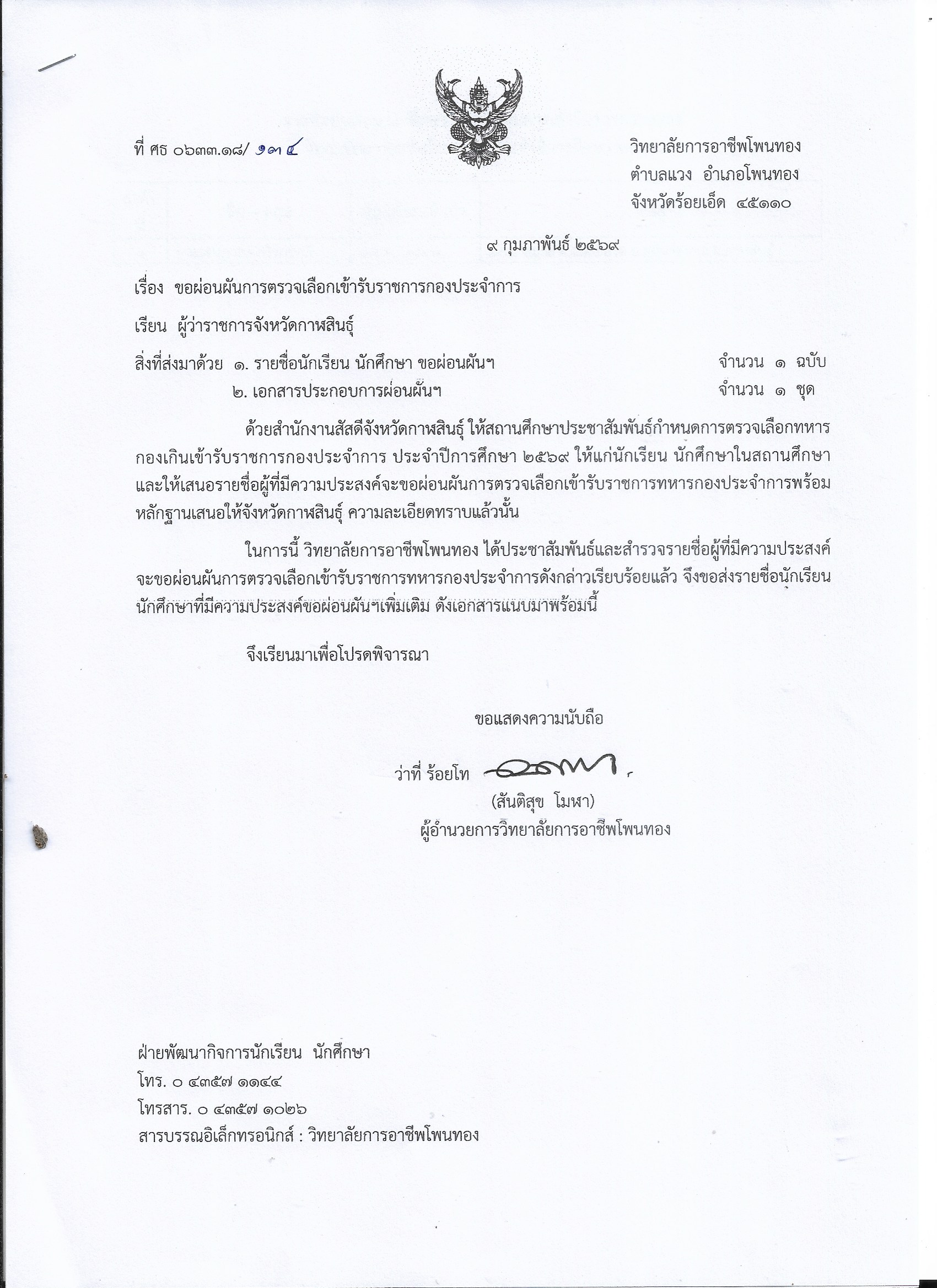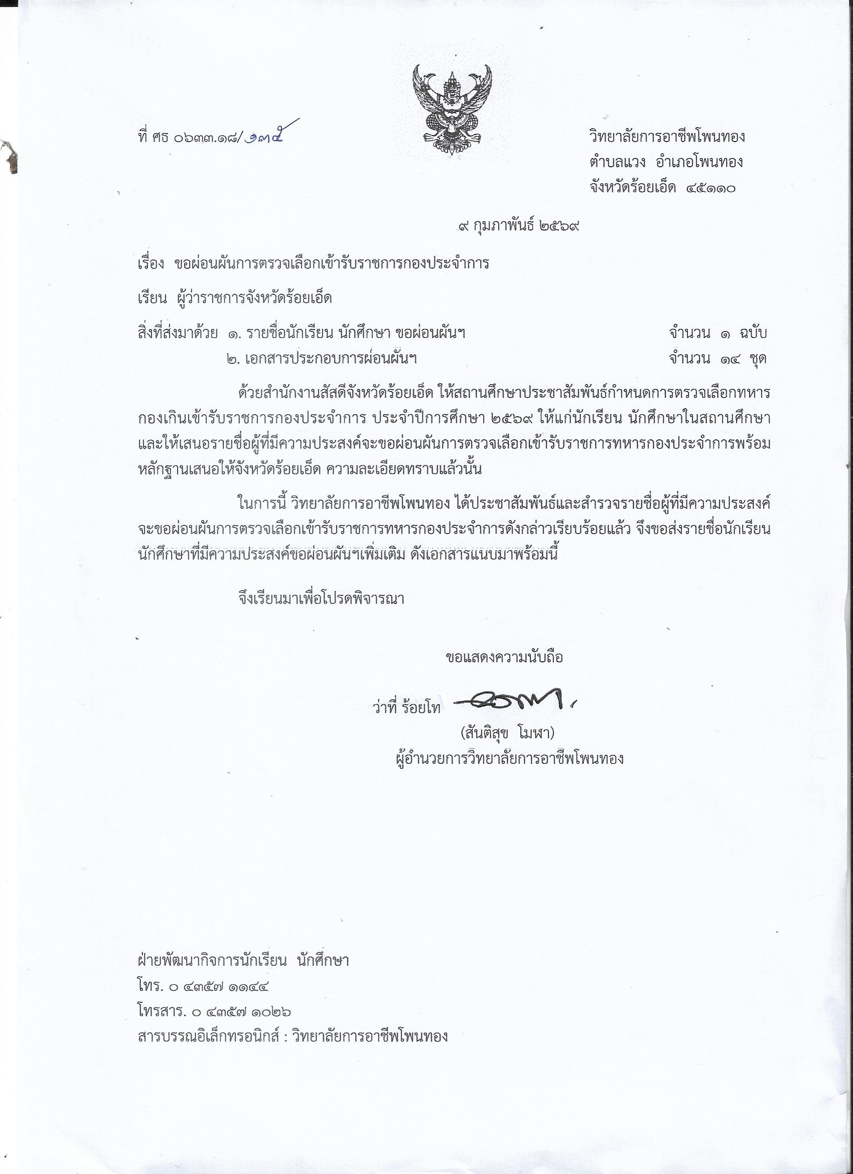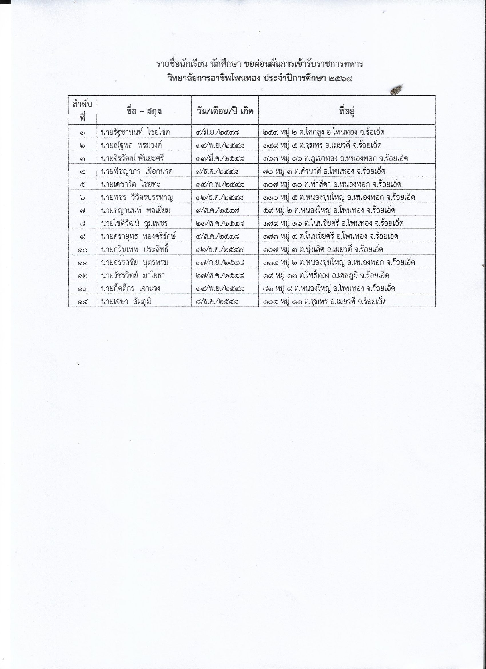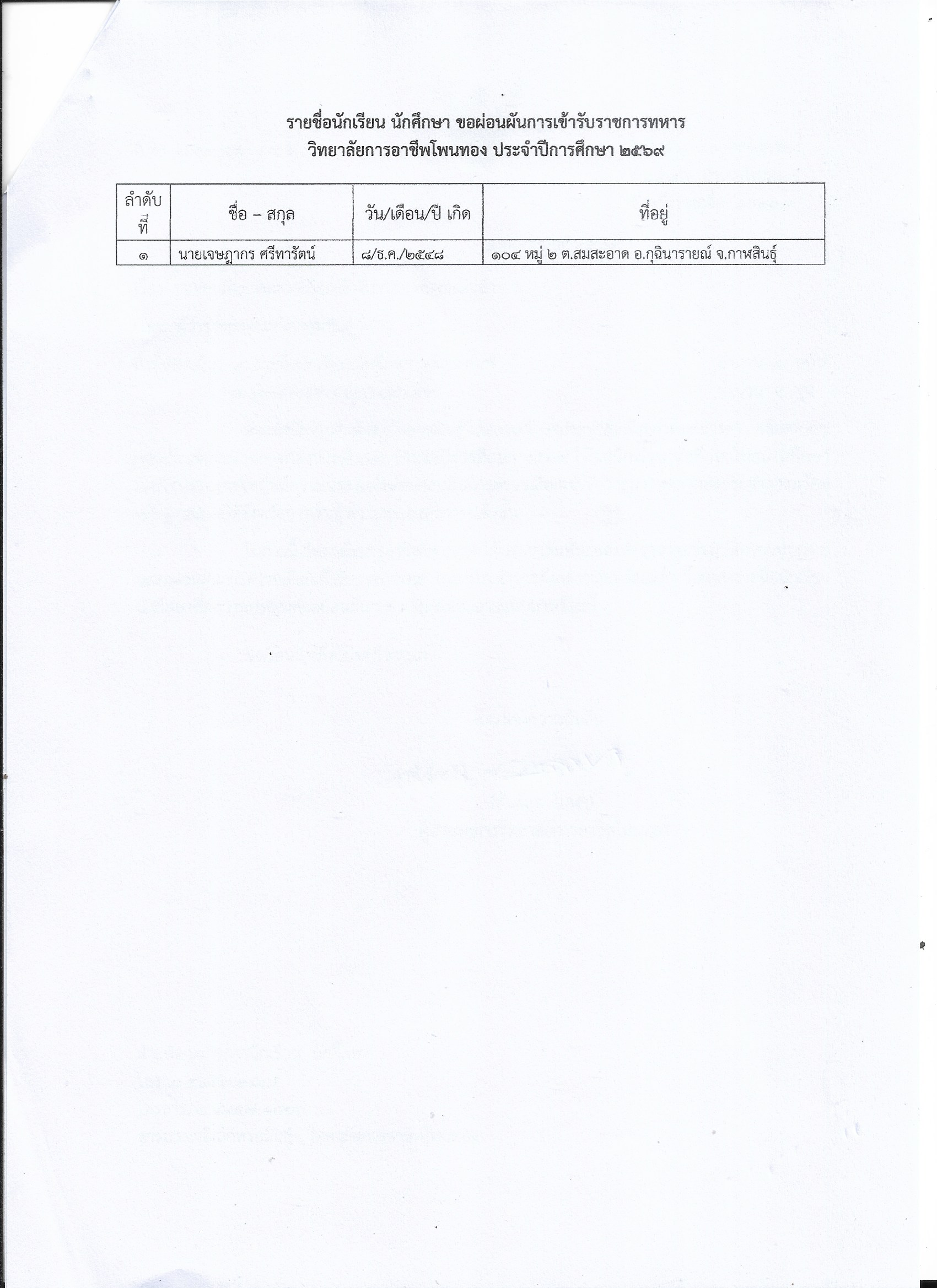 รายชื่อนักศึกษาที่ประสงค์ของผ่อนผันทหารประจำปีการศึกษา 2569