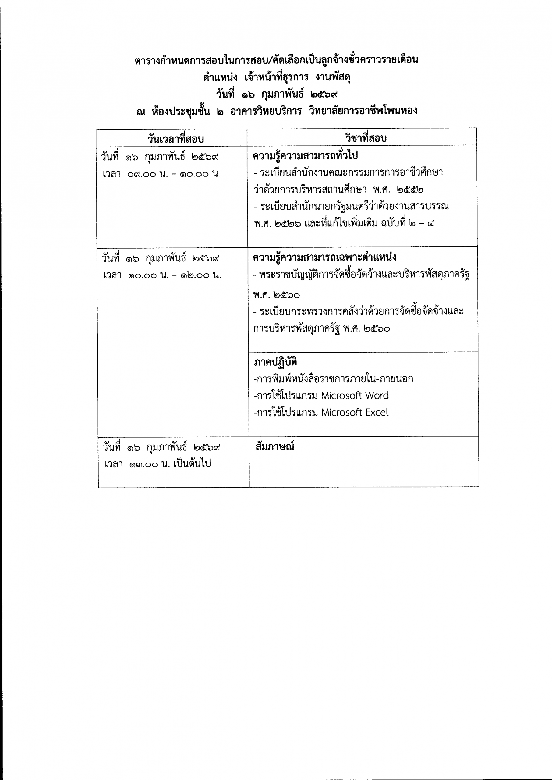 ประกาศ รายชื่อผู้มีสิทธิ์สอบคัดเลือกลูกจ้างชั่วรายคราวรายเดือน ประจำปีงบประมาณ พ.ศ. 2569